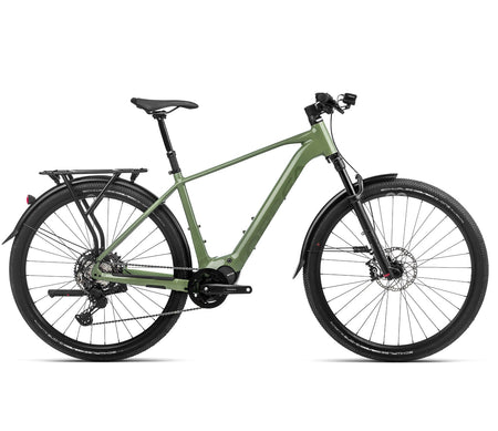 Kemen er Orbea sin nye elektriske hverdagssykkel. Kemen kommer i to rammevarianter, en med høyt innsteg og en med lavt innsteg i rammen. Modellen med lavt innsteg heter Kemen MID, som du kan lese mer om her. Modellene er designet rundt Shimano sin nye EP-serie med motorer av beste kvalitet og har spesialdesignet batteri som sitter inne i rammen. Modellene har innvendig kabelføring, lys bygget diskret inn i rammen. Her får du en komplett pakke med skjermer, støtte, bagasjebrett, lys, kraftige bremser – alt du måtte ønske i et elegant og lekkert utseende.