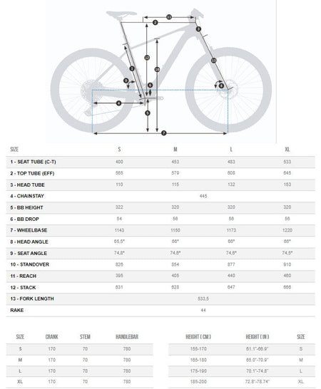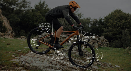Sykkelen har en 66 graders headtube vinkel og 445mm kjedestag i str M.